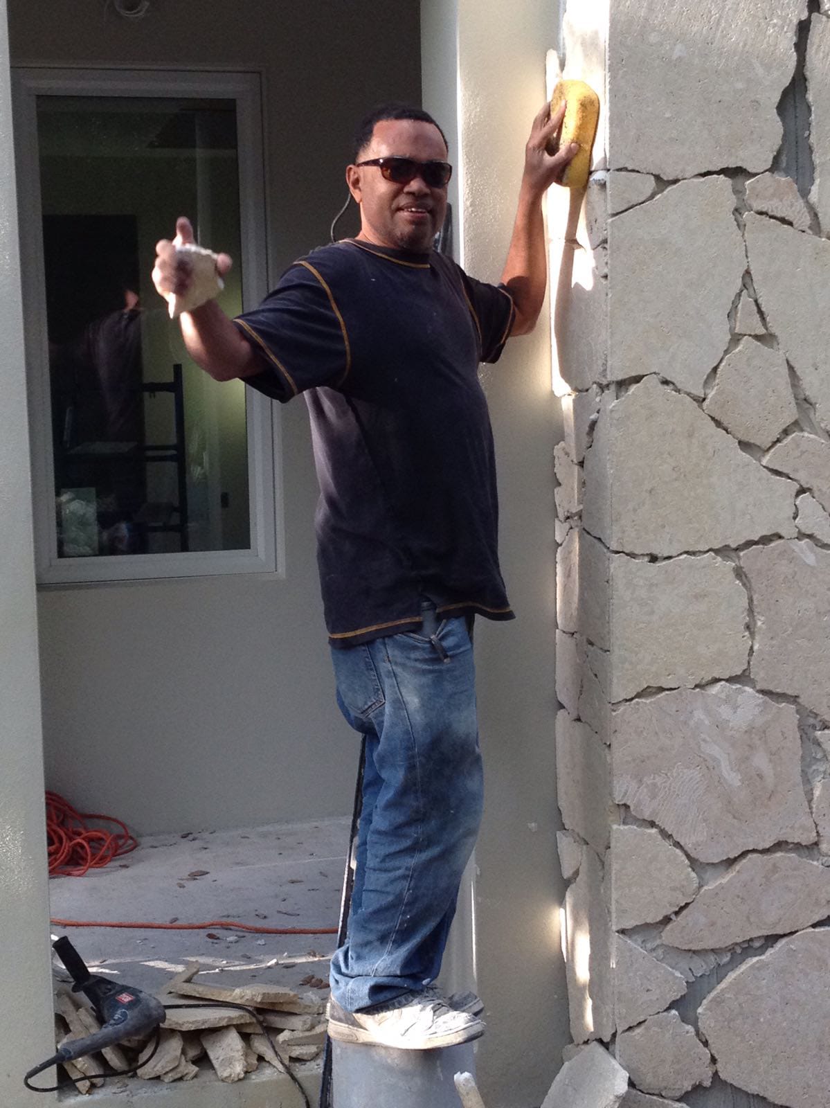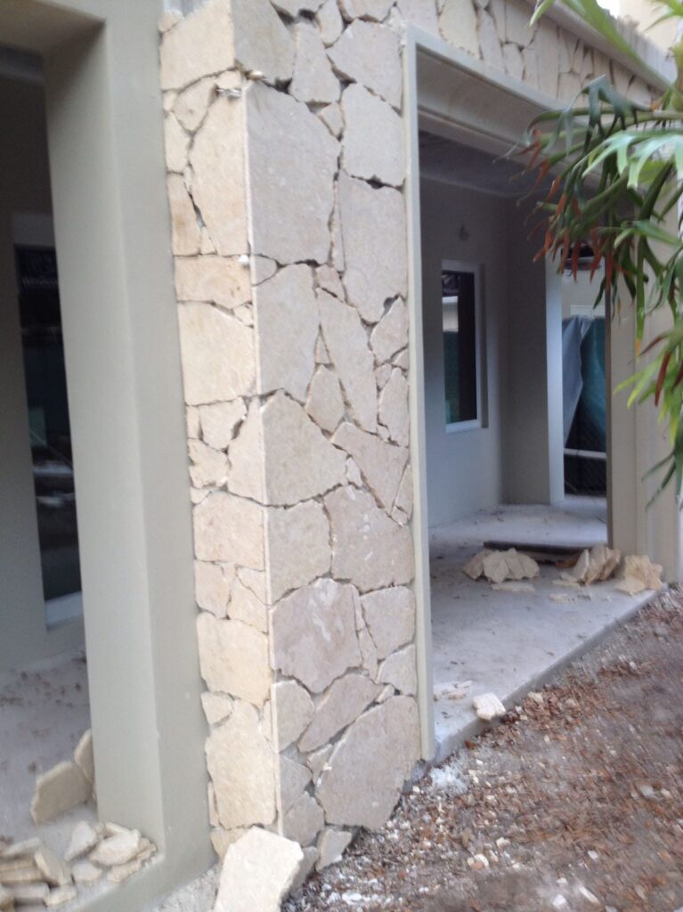 ¾ inch flagstone which can be placed on concrete. This allows for columns, wall veneers, etc.